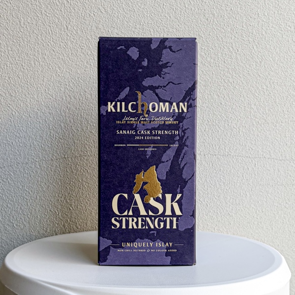 ヘビーピート(フェノール値50ppm)の大麦麦芽を使用し、オロロソシェリー樽で熟成した原酒をメインにヴァッティングした「キルホーマン サナイグ」のカスクストレングスバージョンです。