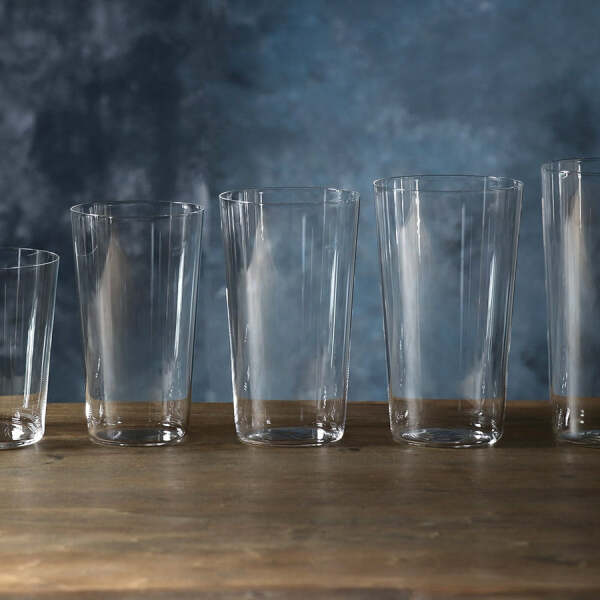 ハンドメイドのものを主流に、創業時より自社工場を持たないガラス食器メーカーとして、『オーソドックス』で『使いやすい』デザインを基本としながら、シンプルかつベーシックなフォルムやラインを追求し、飲食のシーンに寄り添ったグラスを作り続けています。