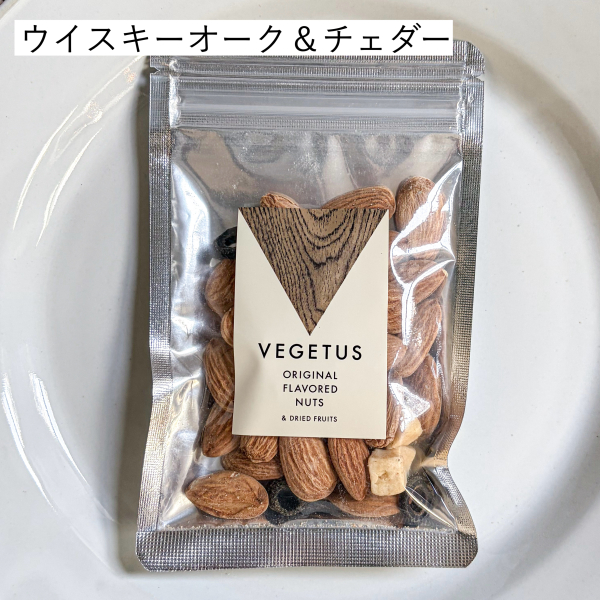 大粒のアーモンドに岩手の野田塩で味付けしたのち、ウイスキーオークのチップで燻しドライブラックオリーブとフリーズドライのチェダーチーズをミックスしました。芳醇な香りと程よい塩気でお酒が進むおつまみナッツです。